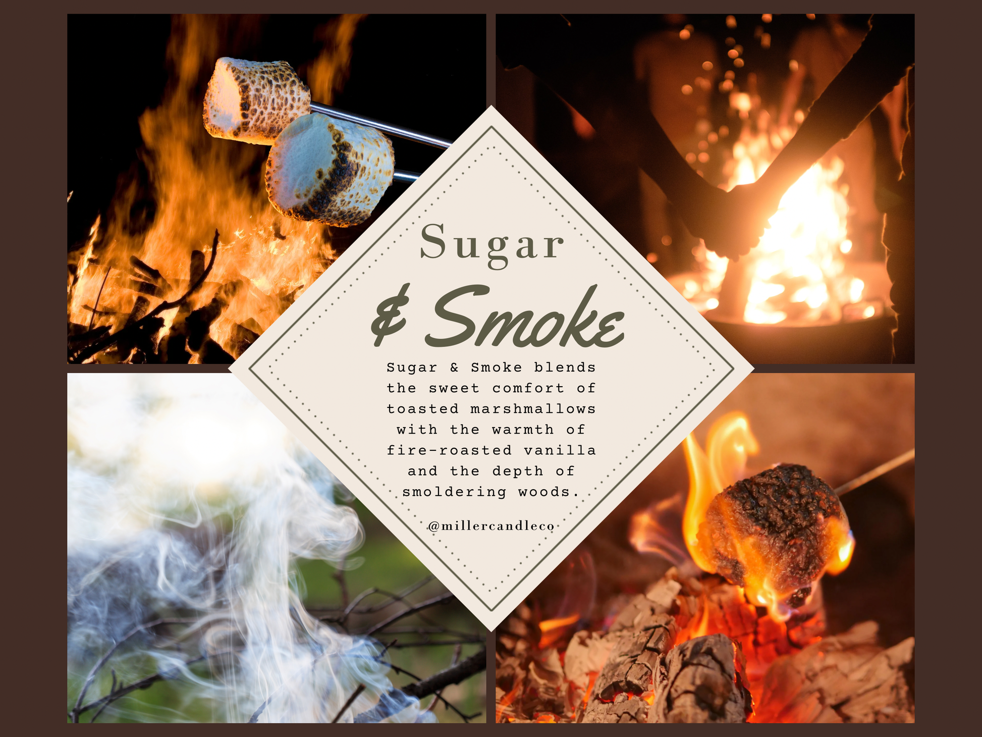 Fragrance Notes: Toasted marshmallow, fire-roasted vanilla, smoldering woods